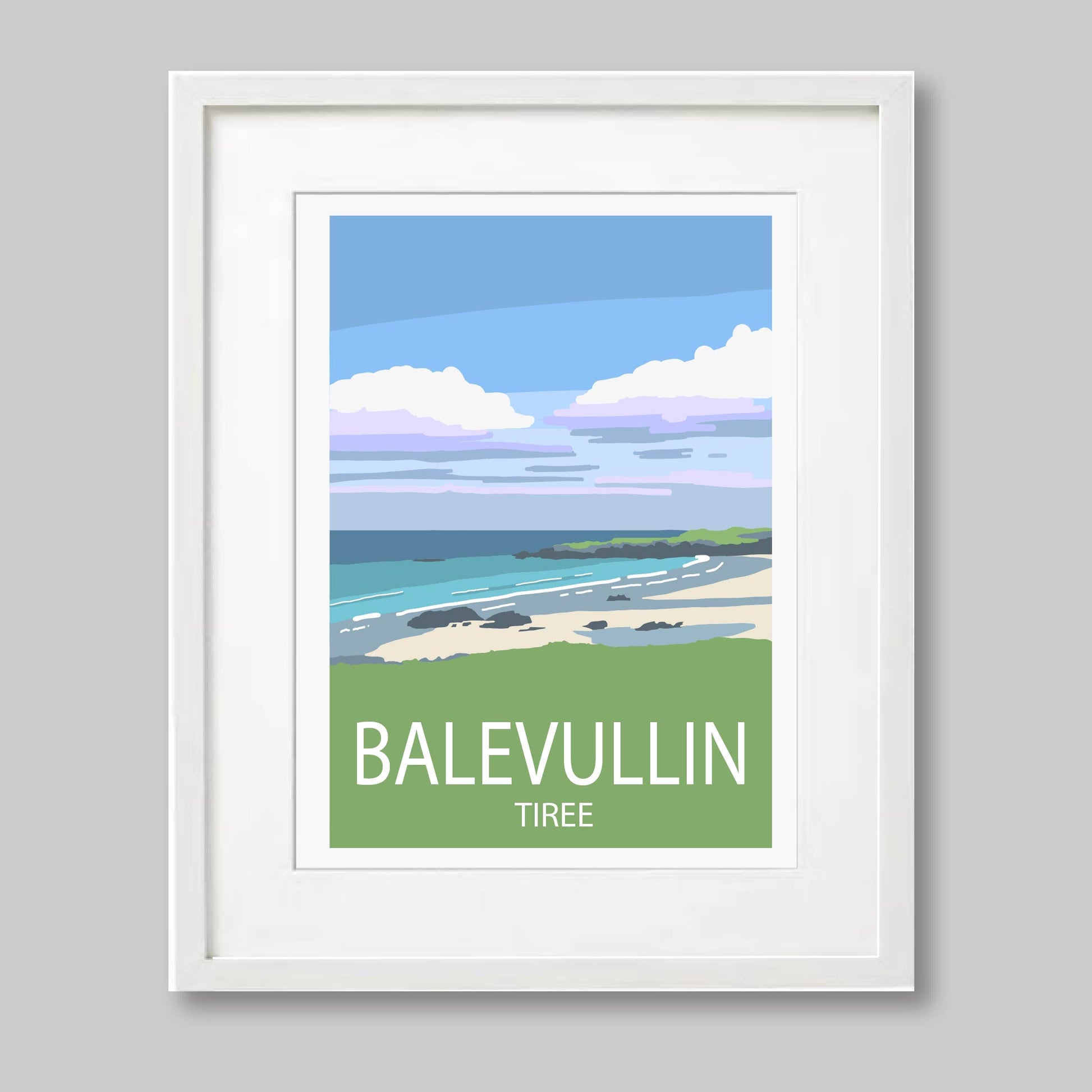 This railway style print is of the surf mecca, Balevullin, a stunning beach on the Isle of Tiree.